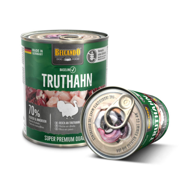 Truthahnfleisch, -leber, -herz, -muskelmagen (26 %); Fleischbrühe (28,8 %); Fleisch; Leber; Magen; Herz; Niere; Lunge; Eierschalen*¹; Mineralstoffe; Distelöl (0,2 %) *¹getrocknet