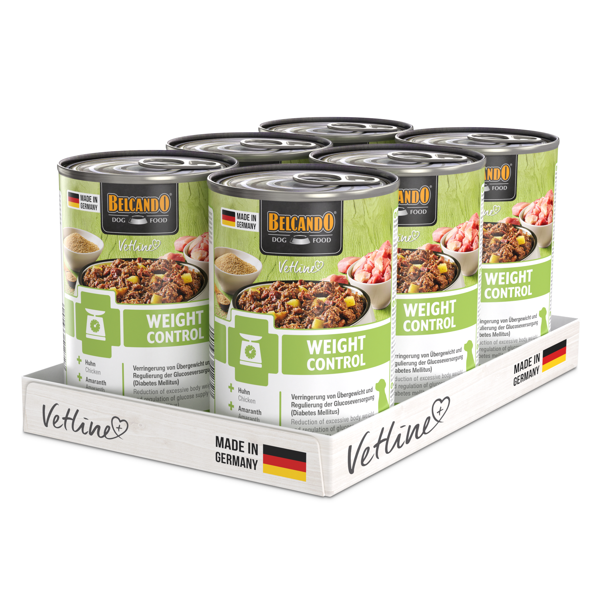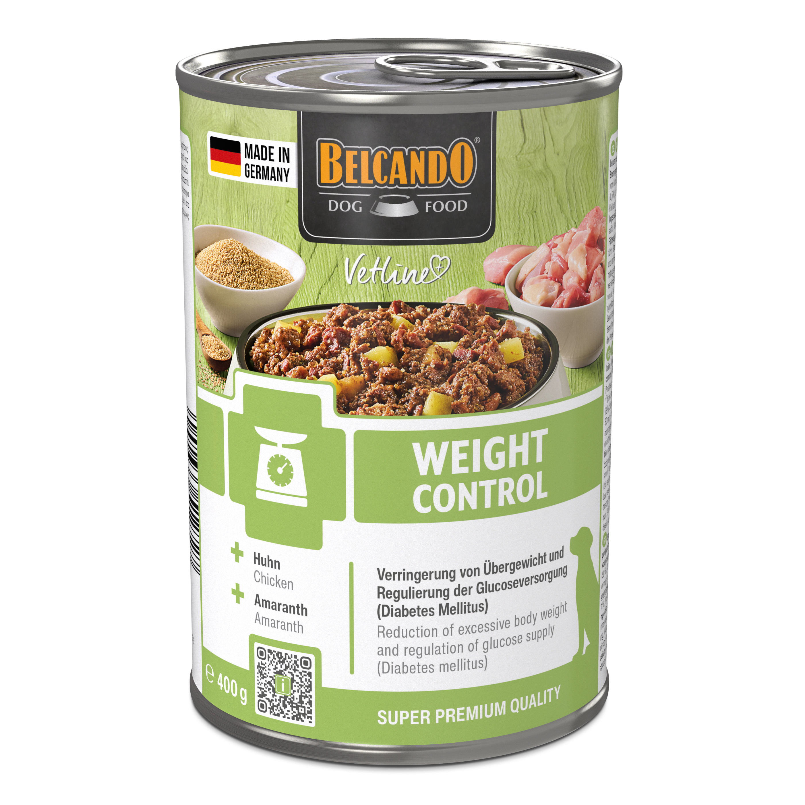 BELCANDO Vetline Weight Control – schmeckt gut, tut gut! Für wen ist Vetline Weight Control geeignet? Für Hunde, die vom Tierarzt aufgrund ihres Übergewichts eine Reduktionsdiät verordnet bekommen haben sowie für Hunde, die von Diabetes Mellitus betroffen sind und begleitend zur Tierärztlichen Behandlung ein passendes Futter benötigen. Im Laufe eines Hundelebens können verschiedene gesundheitliche Herausforderungen auftreten. Zu den häufigsten dieser Beschwerden gehört Übergewicht – ein Problem, das sich durch die gezielte Verwendung von Spezialfutter wie Vetline Weight Control wieder in den Griff bekommen lässt. Was die BELCANDO Vetline von anderen Diät-Alleinfuttermittel unterscheidet? Die Verwendung garantiert bester Zutaten mit Fokus auf Frische und Ausgewogenheit für den besten Geschmack! Dazu gehören die wertvolle Superfoods Amaranth und Apfelfaser sowie frisches Hühnerfleisch. Zudem bietet die Vetline die Wahl: Trockenfutter, Nassfutter – oder beides zusammen? Beide Futterarten sind optimal auf die Bedürfnisse übergewichtiger Hunde abgestimmt. Damit die Umstellung möglichst reibungslos funktioniert, solltest Du Deine gewohnten Abläufe beibehalten. Wähle daher die Futterart, die Dein Hund schon vorher gewohnt war. Wenn Dein Hund Trocken- und Nassfutter gemischt am liebsten mag, kannst Du dies auch mit Vetline Weight Control Nass- und Trockenfutter fortführen.