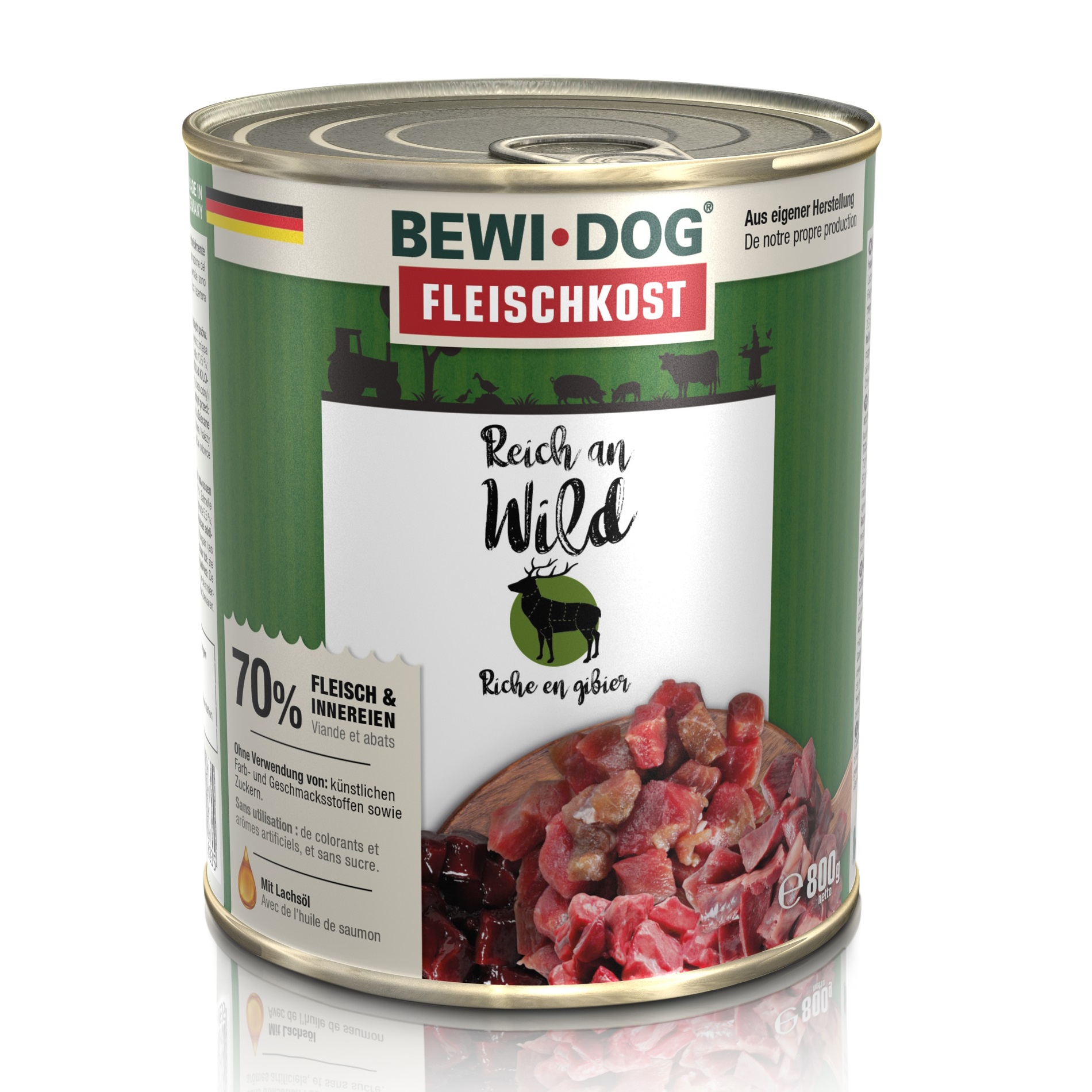 BEWI DOG® Fleischkost enthält saftiges Muskelfleisch mit einer festen Fleischstruktur. So, wie es Hunde lieben. Die vielen Geschmacksvarianten sorgen für eine willkommende Abwechslung.