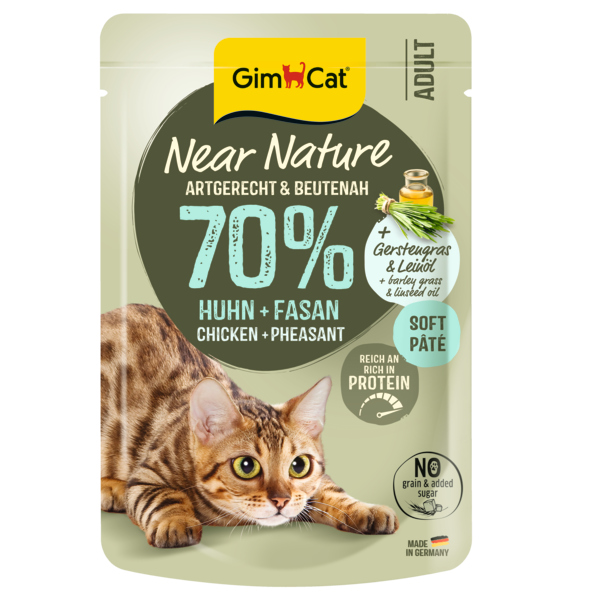Hühnerfleisch, -muskelmagen, -leber, -herz 55 %, Fleischbrühe 23,4 %, Entenfleisch 15 %, Eiklar, getrocknet 5 %, Eierschalen, getrocknet 0,5 %, Leinöl 0,5 %, Mineralstoffe 0,5 %, Gerstengras, getrocknet 0,1 %.