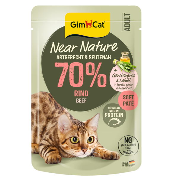 Rindfleisch, -leber, -herz, -lunge 70 %, Fleischbrühe 23,5 %, Eiklar, getrocknet 5 %, Leinöl 0,5 %, Mineralstoffe 0,5 %, Eierschalen, getrocknet 0,4 %, Gerstengras, getrocknet 0,1 %.