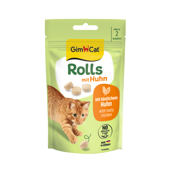 GimCat Rolls mit Huhn sind der perfekte Snack zum Spielen und Genießen.