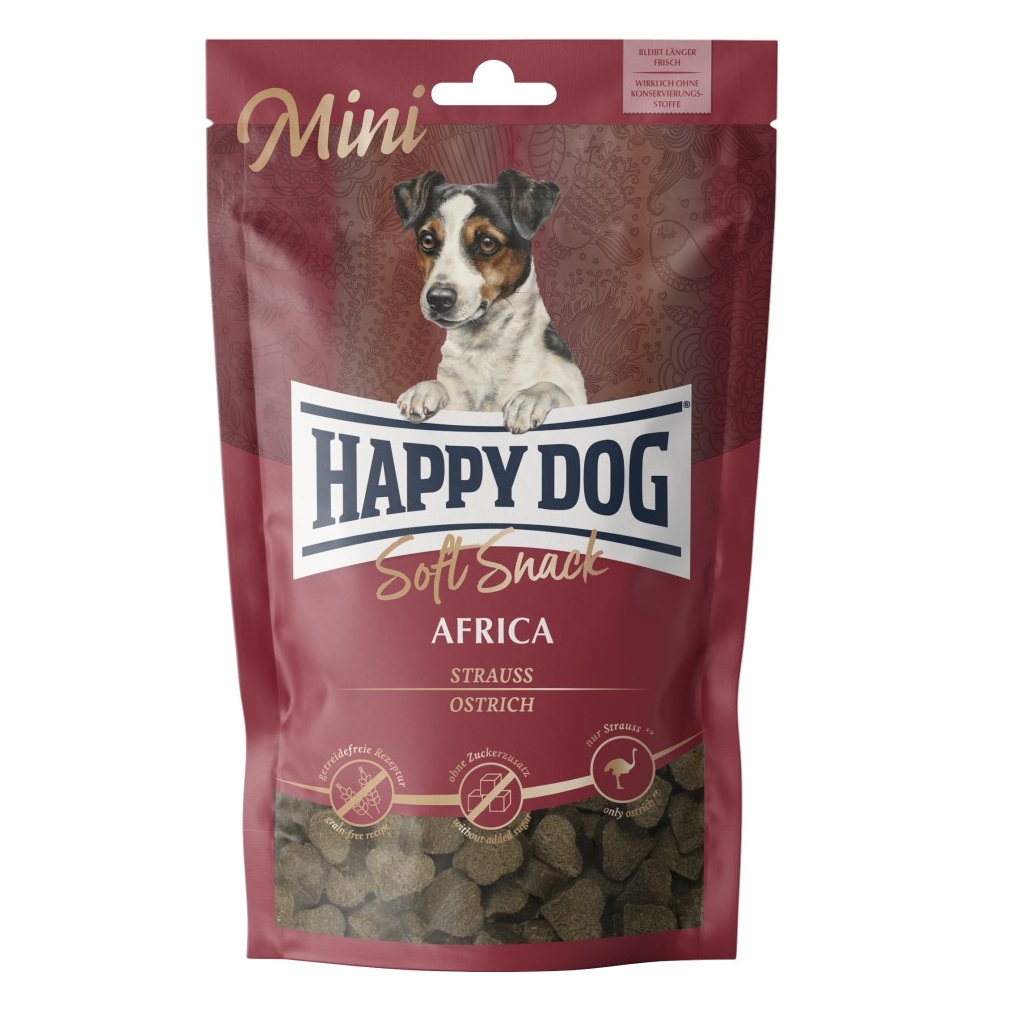 Der getreidefreie Soft Snack Mini Africa mit afrikanischem Strauß und Kartoffel verwöhnt kleine Feinschmecker. Schmackhafte Verwöhnmomente sind hier garantiert.