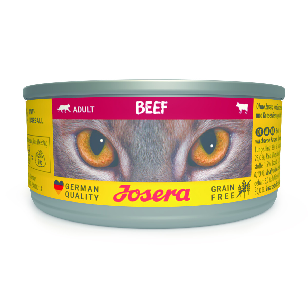 Was wohl heute im Napf wartet? Vielleicht unser neues Josera Nassfutter Beef aus der Dose? Samtpfoten lieben den Geschmack von leckerem Rind. Lachsöl ist natürlich auch superlecker – und bringt zudem essenzielle Omega-3-Fettsäuren mit.