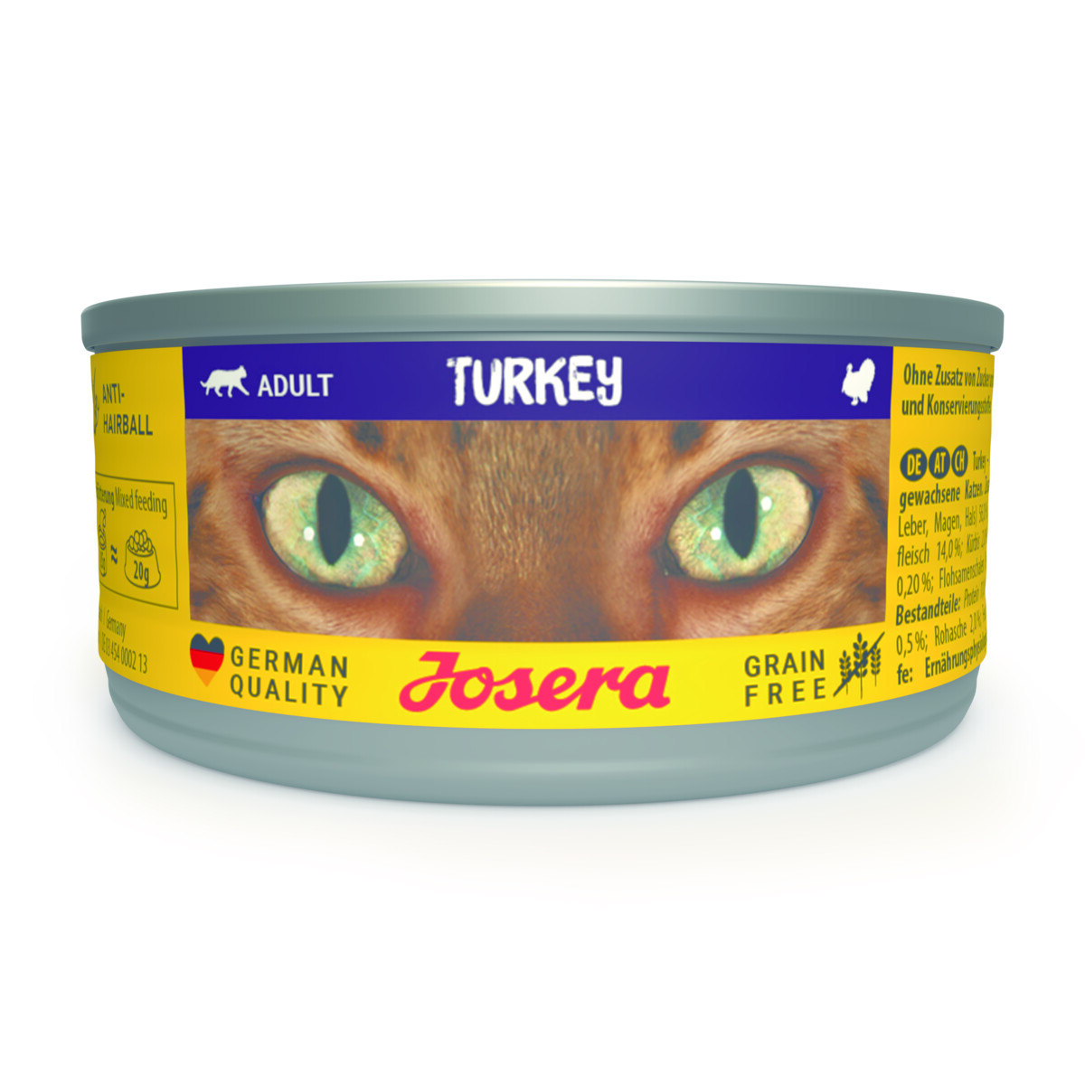 Samtpfoten haben uns vieles voraus: Vor allem wissen sie sehr genau, was sie wollen – und zwar im Napf. Unser neues Josera Nassfutter Turkey ist eine von vielen leckeren Antworten darauf. Das Nassfutter mit Pute hat eine getreidefreie Rezeptur und viiiel Geschmack.