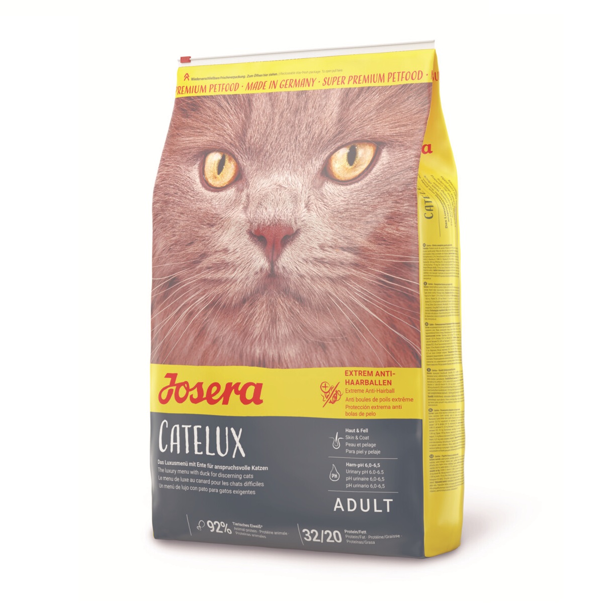 Mit leckerer Ente & Kartoffel ist Josera Catelux perfekt für Feinschmecker geeignet. Durch das Plus an diätetischen Fasern ist Catelux ebenfalls die ideale Nahrung für Katzen, die zur Haarballenbildung neigen.