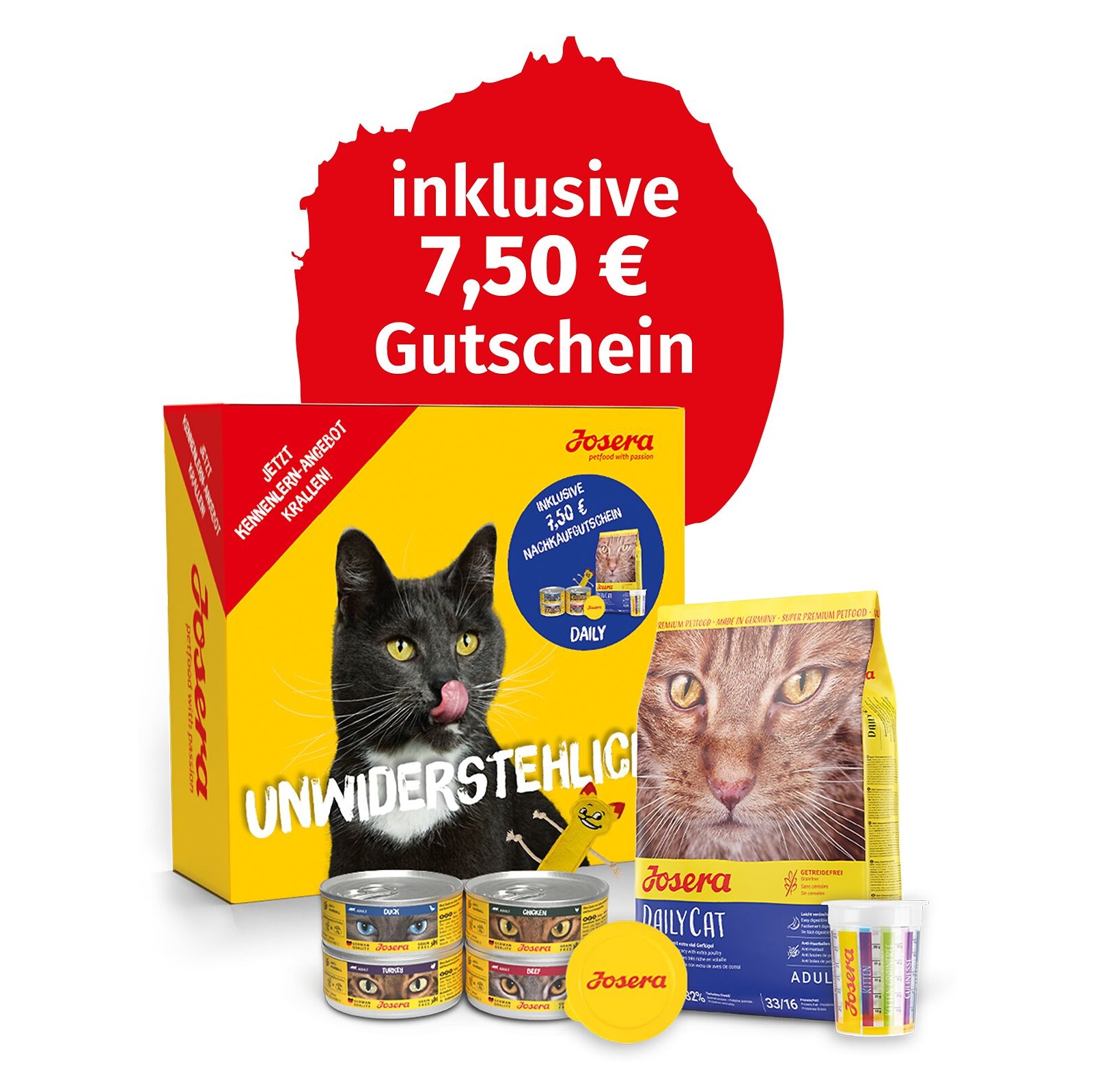 Sucht Deine Katze Tag für Tag nach Abwechslung im Napf? Dann krallt Euch unser Josera Probierpaket Daily! Darin findest Du nämlich neben unserem Josera DailyCat Trockenfutter mit Geflügel vier leckere Nassfutter von Josera – und noch mehr: