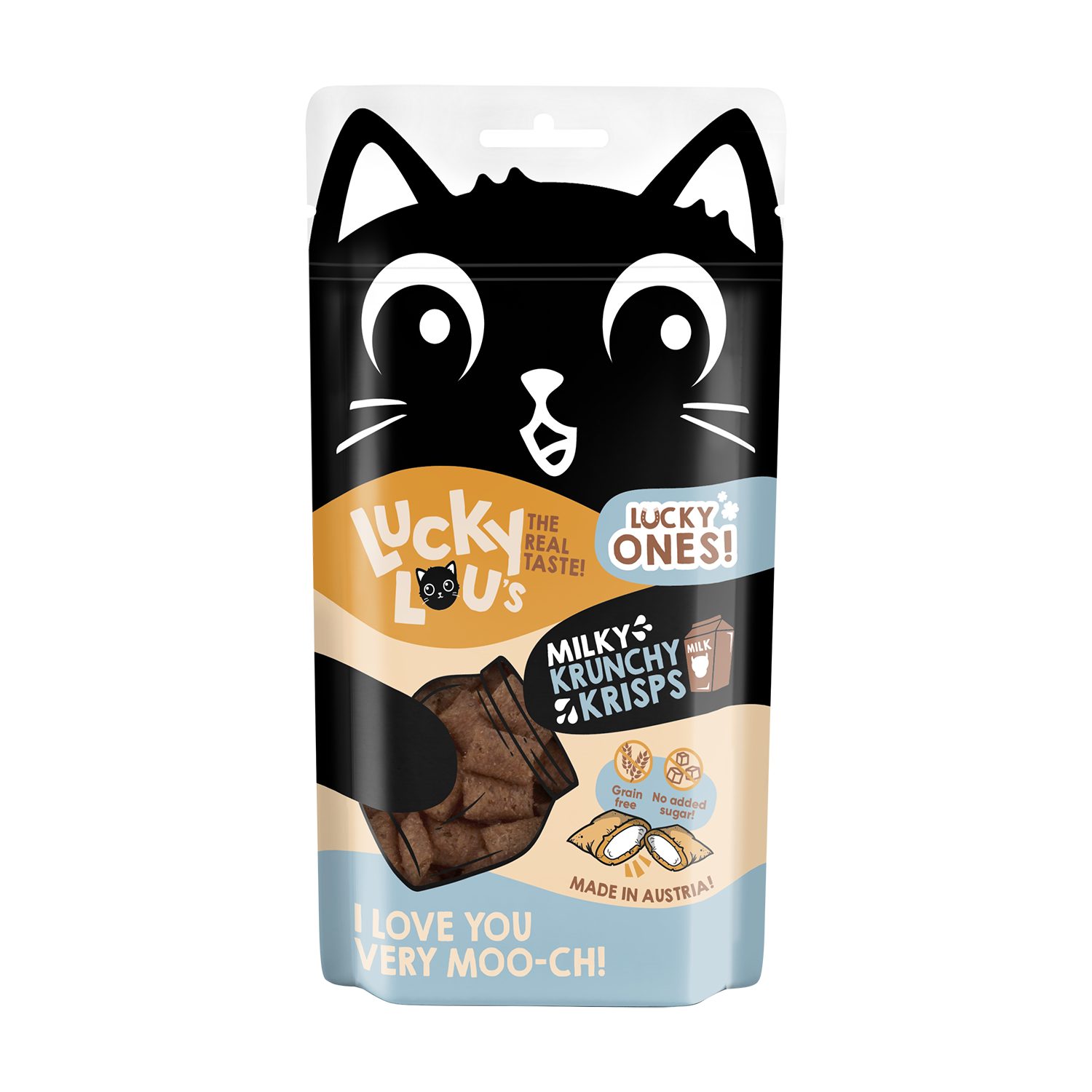 Für den extra Wohlfühlfaktor enthalten Lucky Ones Krunchy Krisps reichlich Vitamine und Taurin, welches für uns Katzen megawichtig ist. Außerdem findet sich in der Sorte Huhn ein echtes Superfood. Cranberrys sind eine prima Quelle für Antioxidanzien, die freie Radikale binden. Das hält uns Katzen geschmeidig und knackig, genau wie meine Krunchy Krisps. Olé. Die Sorte Milch punktet auf der Gesundheitsskala mit Lachsöl. Lachs ist eine natürliche Quelle von essenziellen Omega-3-Fettsäuren. Und weißt du was: Huhn & Lachs ist best of both worlds! Genial, oder?