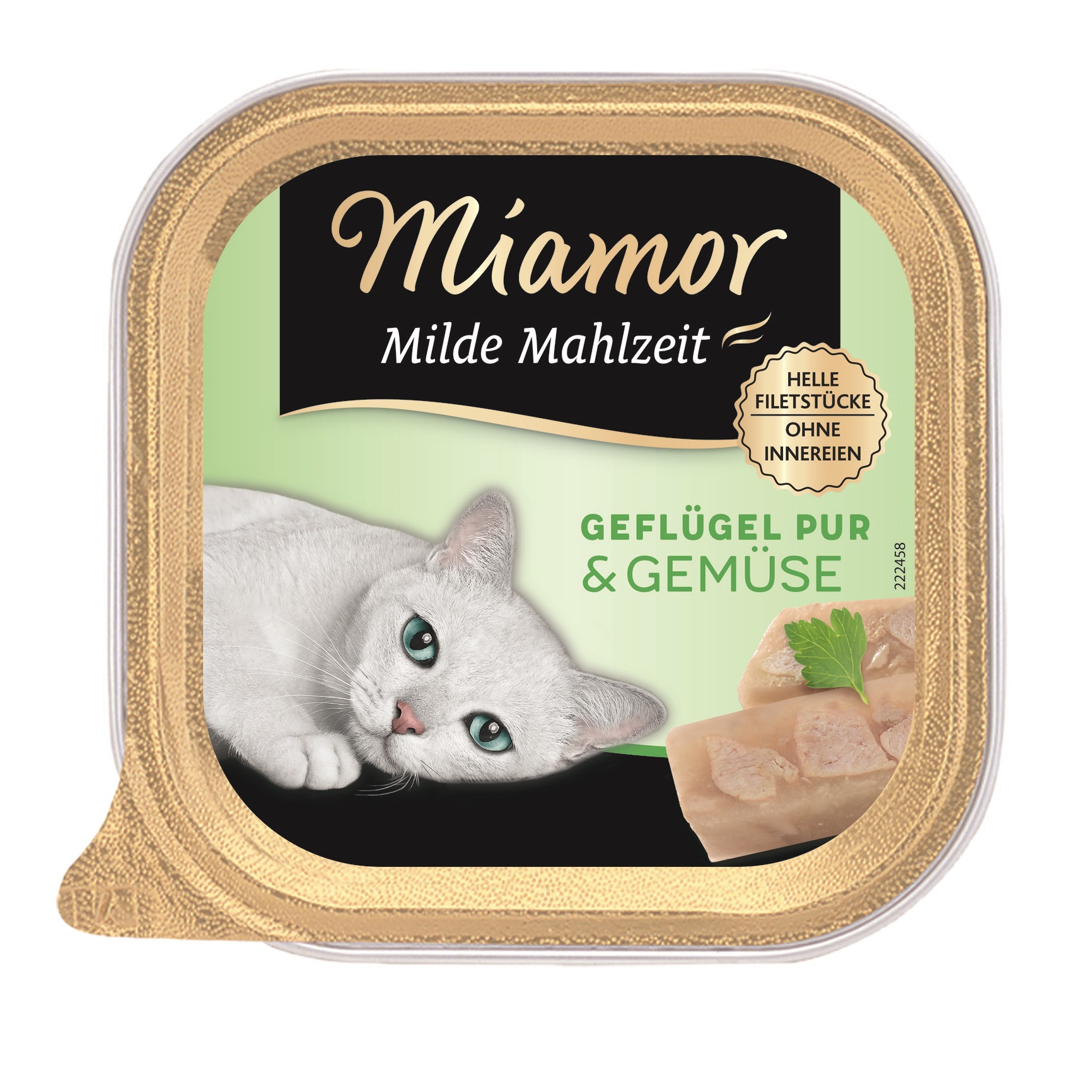 Helle Filetstücke vom Geflügel – ohne Leber, ohne Innereien. Für Katzen, die leicht verdauliche Kost bevorzugen und auch gut geeignet bei Übergewicht und Bewegungsarmut. Mahlzeiten auf der Basis von Geflügel sind besonders leicht und bekömmlich. Schonend zubereitet.