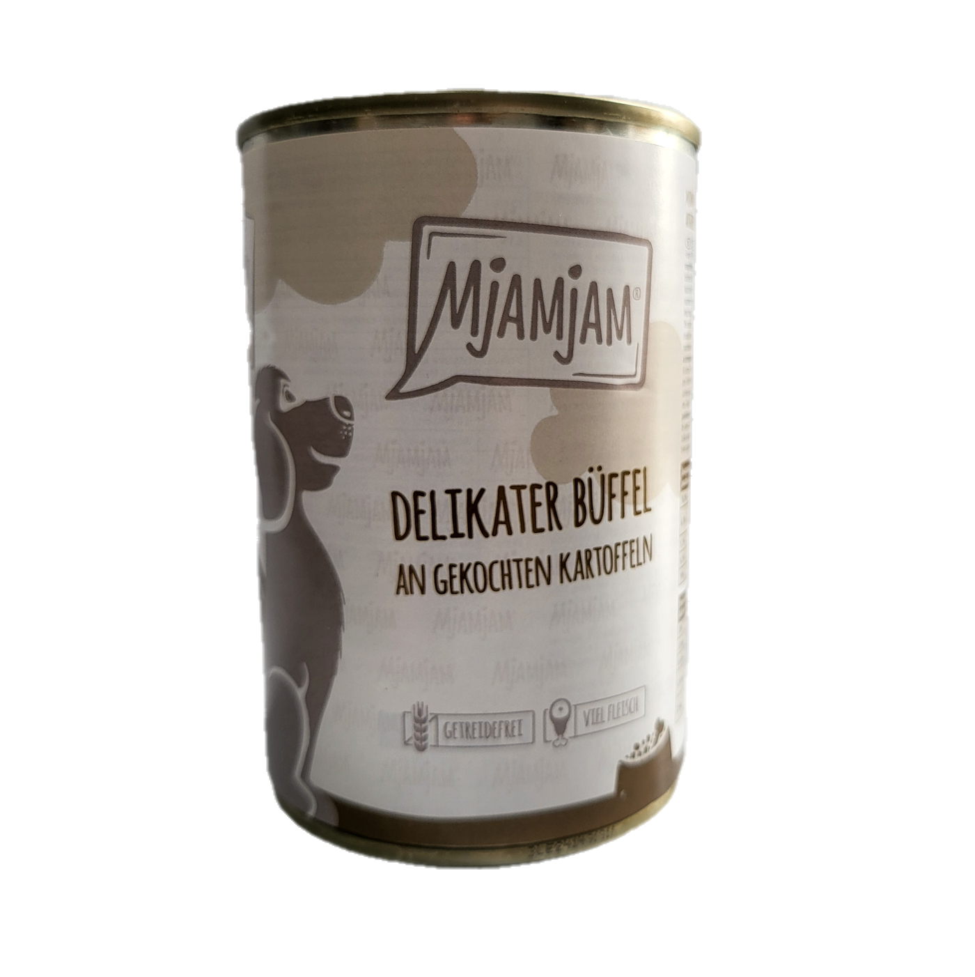 Büffelfleisch, -magen, -leber, -lunge 67%, Kartoffel 7,95%, Fleischbrühe 25%, Mineralstoffe 0,05%.