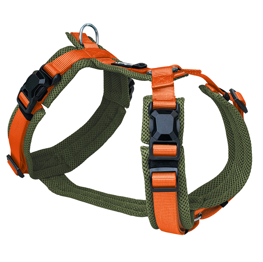 • Dank Easy Entrance-Extraschnalle an den Geschirren muss es nicht über den Kopf gezogen werden – ideal für ängstliche Hunde