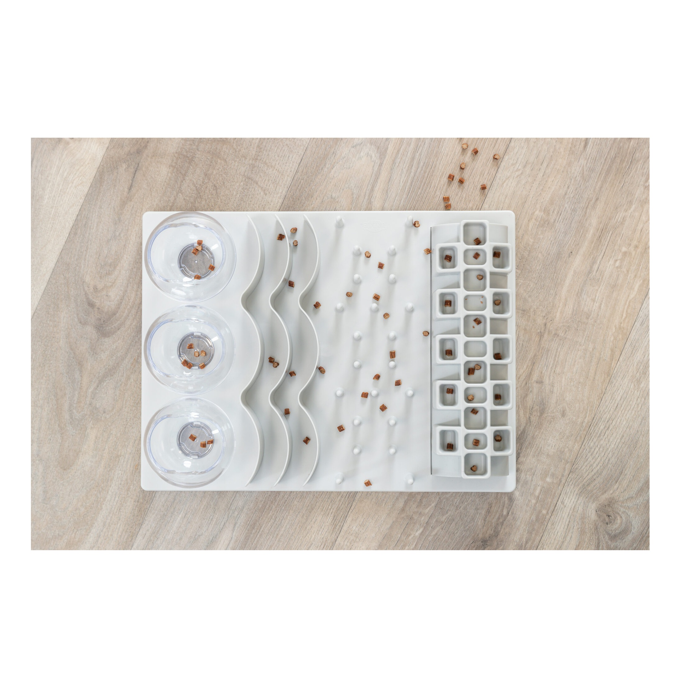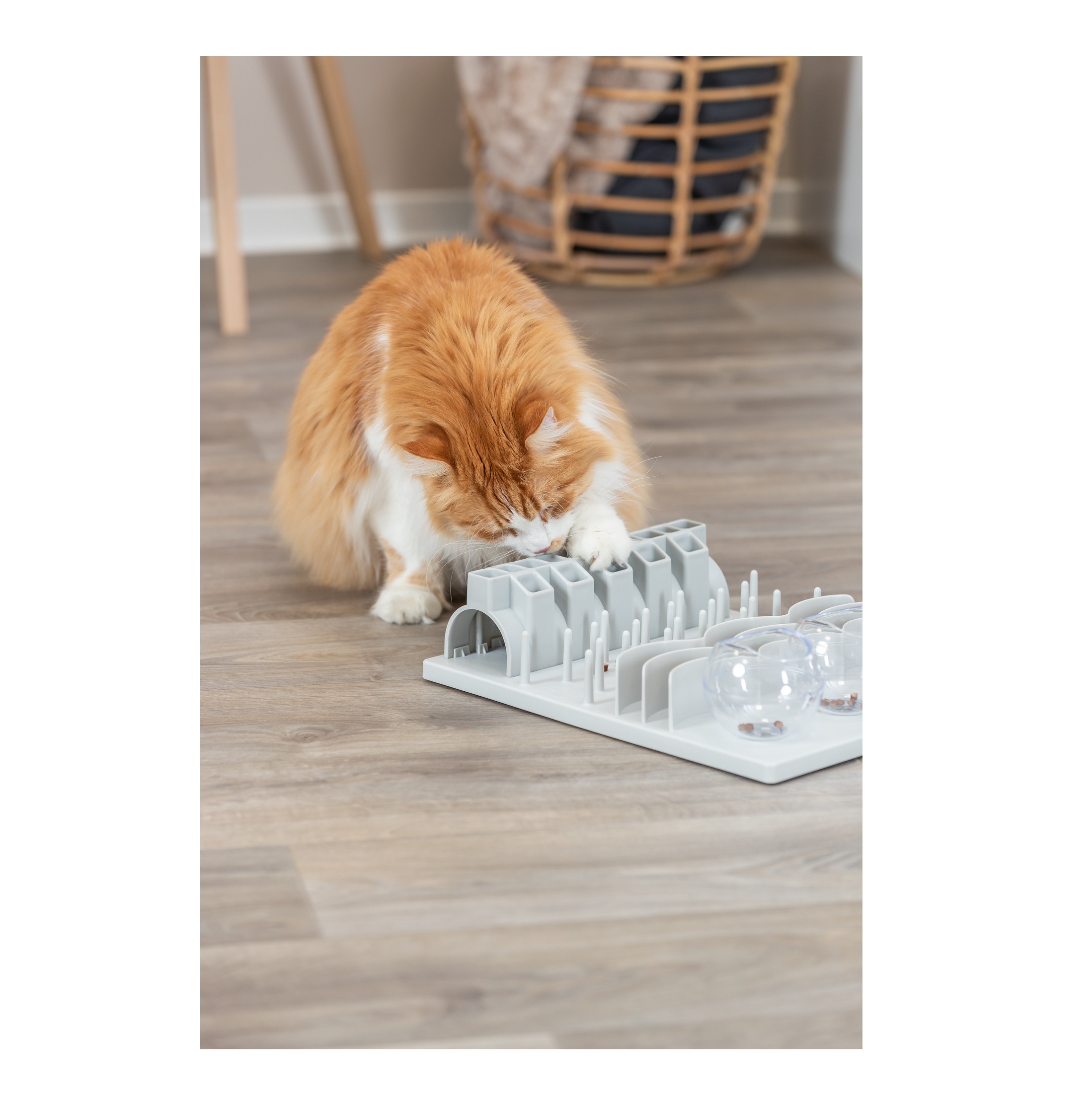 Das Fun Board XXL von TRIXIE bietet großen Katzen eine spannende Herausforderung mit fünf unterschiedlichen Spielmodulen. Entwickelt von der Katzenexpertin Helena Dbalý, kann das Intelligenzspiel auch zur täglichen Trockenfuttergabe genutzt werden. Es lässt sich mit Spielzeugen und größeren Leckerbissen befüllen, was den Spielspaß erhöht. Deine Katze muss nun versuchen, an die platzierten Leckerbissen oder Spielzeuge durch den Einsatz ihrer Pfoten oder ihres Mauls heranzukommen. Dank der rutschfesten Gummifüße bleibt das Fun Board sicher an seinem Platz. Zu eurer Unterstützung liegt dem Spiel eine detaillierte Trainingsanleitung bei.