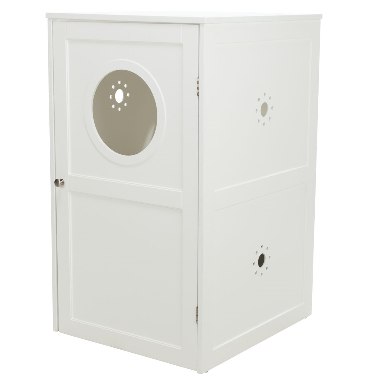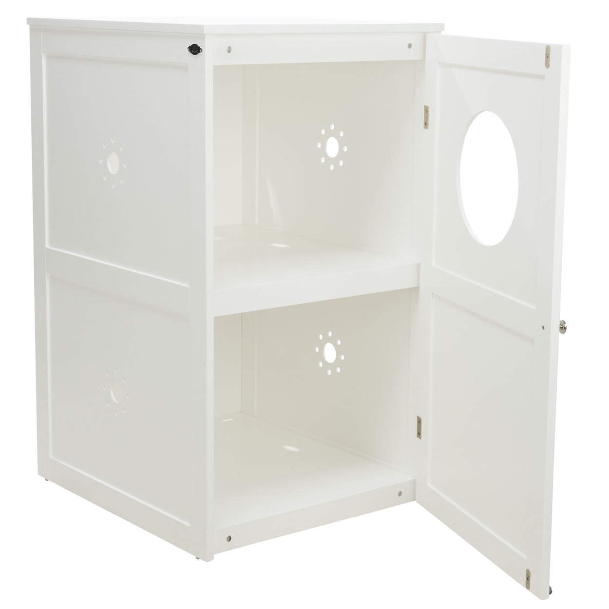 Du möchtest die Katzentoilette optimal unterbringen und suchst eine optisch ansprechende Lösung? Das Katzenhaus mit zwei Etagen für Katzentoiletten eignet sich perfekt zum Verbergen einer Katzentoilette und bietet gleichzeitig genug Stauraum für Katzenstreu und andere Utensilien. Durch den zugehörigen Vorleger für die Katzentoilette kann sich dein Stubentiger die Pfoten reinigen und das Austreten von Katzenstreu wird verhindert. Die Tür mit Einstiegsloch kann wahlweise rechts oder links eingebaut werden und ist mit einem praktischen Magnetverschluss ausgestattet. Unsere Katzentoilette 4018 eignet sich perfekt für das Katzenhaus.
