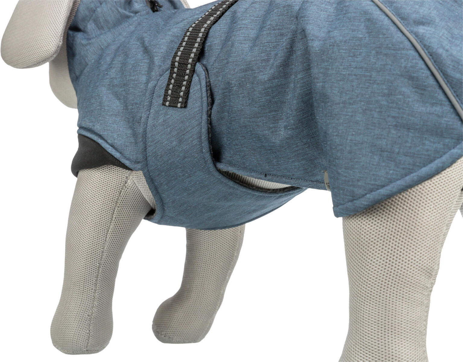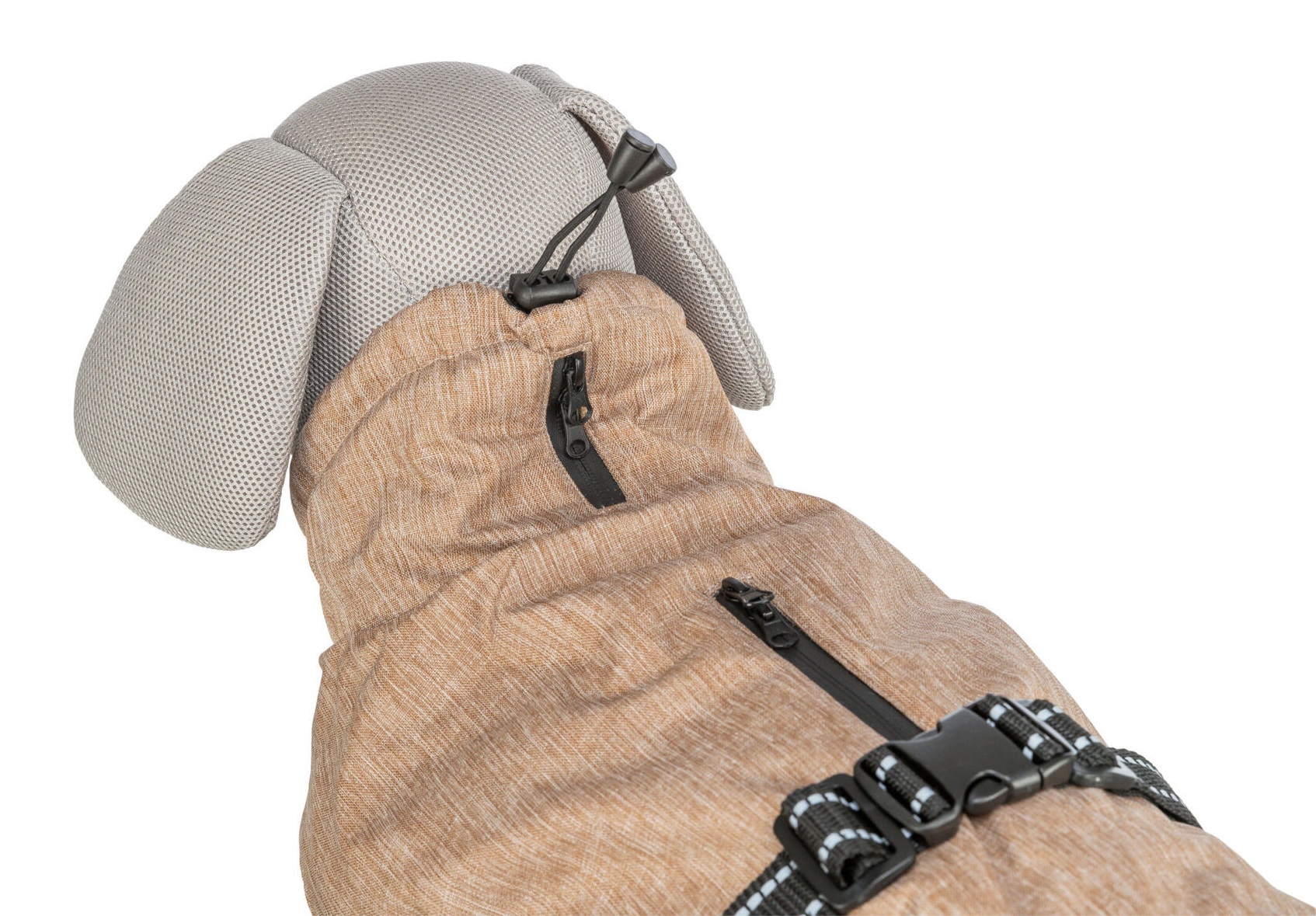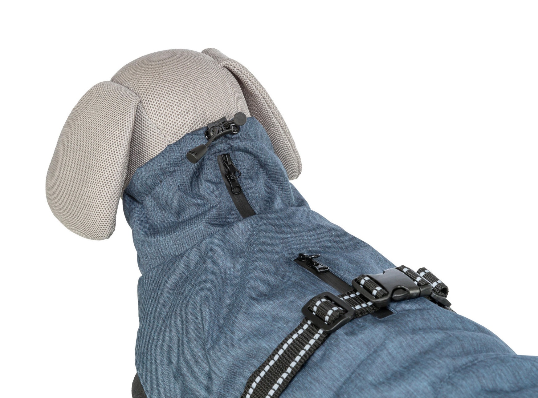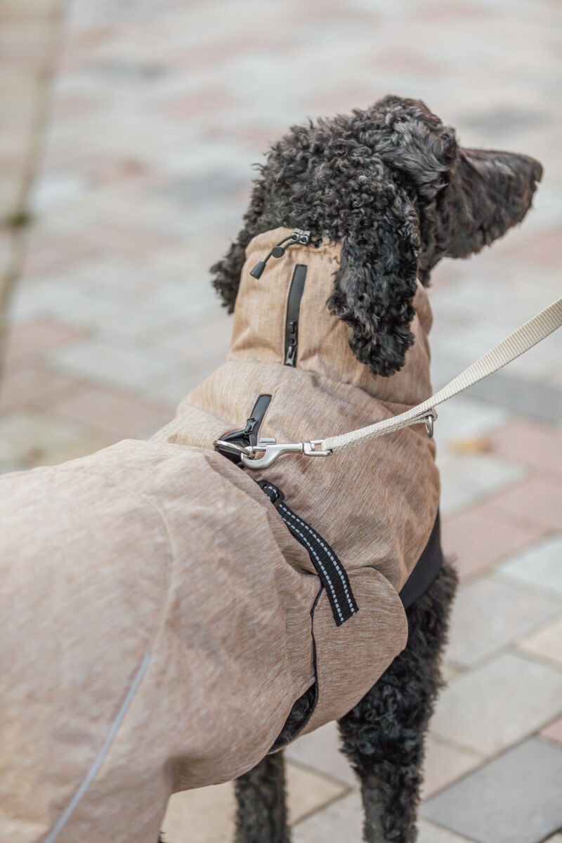 • mit zwei wasserdichten Reißverschlüssen zum Anleinen an Halsband bzw. Geschirr